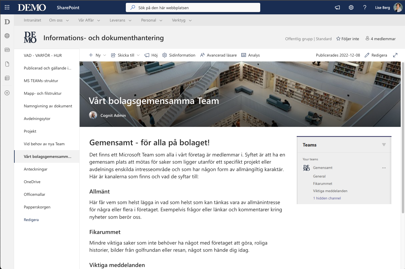 Exempel på dokumentstyrningssida för ett SharePoint-baserat intranät